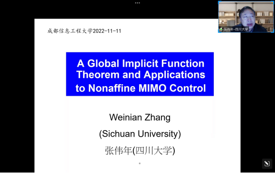 11月11日上午,受应用数学院邀请,四川大学吕克宁教授在线上开展了专题学术报告。william英国中文院长周钰谦、学院相关研究领域老师、各年级研究生和部分本科生到在信息楼六楼多功能厅集中观看了报告直播,报告我院特聘专家李继彬教授由主持。 张伟年教授本次报告题目是“一个全局隐函数定理及其在非仿射MIMO控制中的应用”。对非仿射系统的控制设计是个困难的问题,因为其关键是要求解一个全局的隐函数而且在没有初始点条件的情形。本报告介绍一个与S.S.Ge合作的工作。在没有初始点条件的情形给出了一个高维的全局隐函数定理,并用此定理给出了非仿射MIMO系统的可控性。讲座开始后,张教授十分的投入,细心的为同学们讲解问题,同时,观看的同学们也热情高涨,认真地听着老师的讲解,并不时记录笔记。汇报完后,有同学询问老师研究生阶段的学习方法,张教授也十分耐心的为同学们解答,教导大家改变学习思路,探寻问题源头,并鼓励大家刻苦钻研,不畏艰难,做好学问。