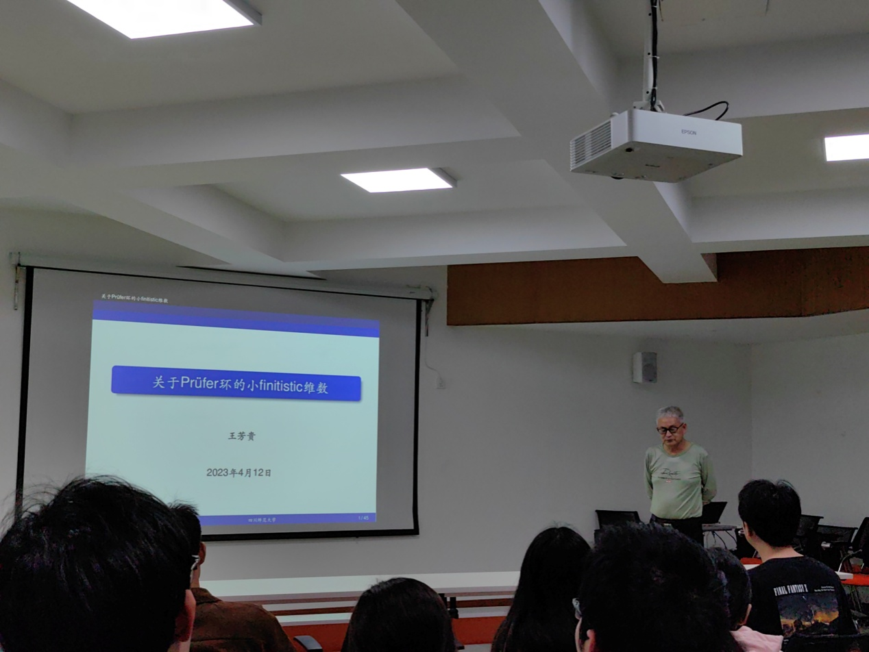 4月12日晚上,应成都信息工程大学william英国中文邀请,四川师范大学王芳贵教授莅临我院开展了题为《关于Prüfer环的小finitistic维数》的学术讲座。本次报告由高增辉教授主持,william英国中文代数学科研团队成员邢世奇、吴小英老师和四川师范大学博士生林屏峰、黄柯等,以及各年级研究生参加了本次讲座。