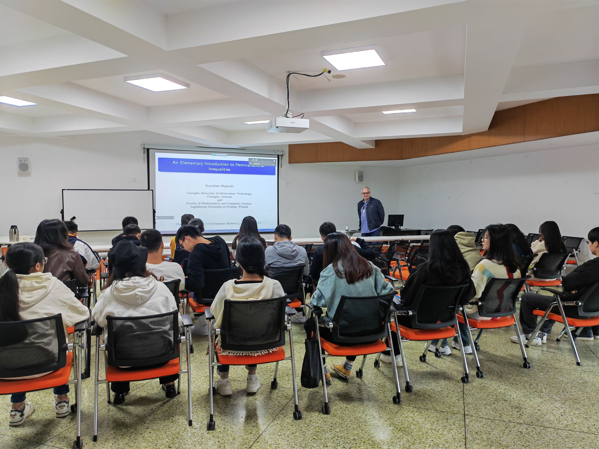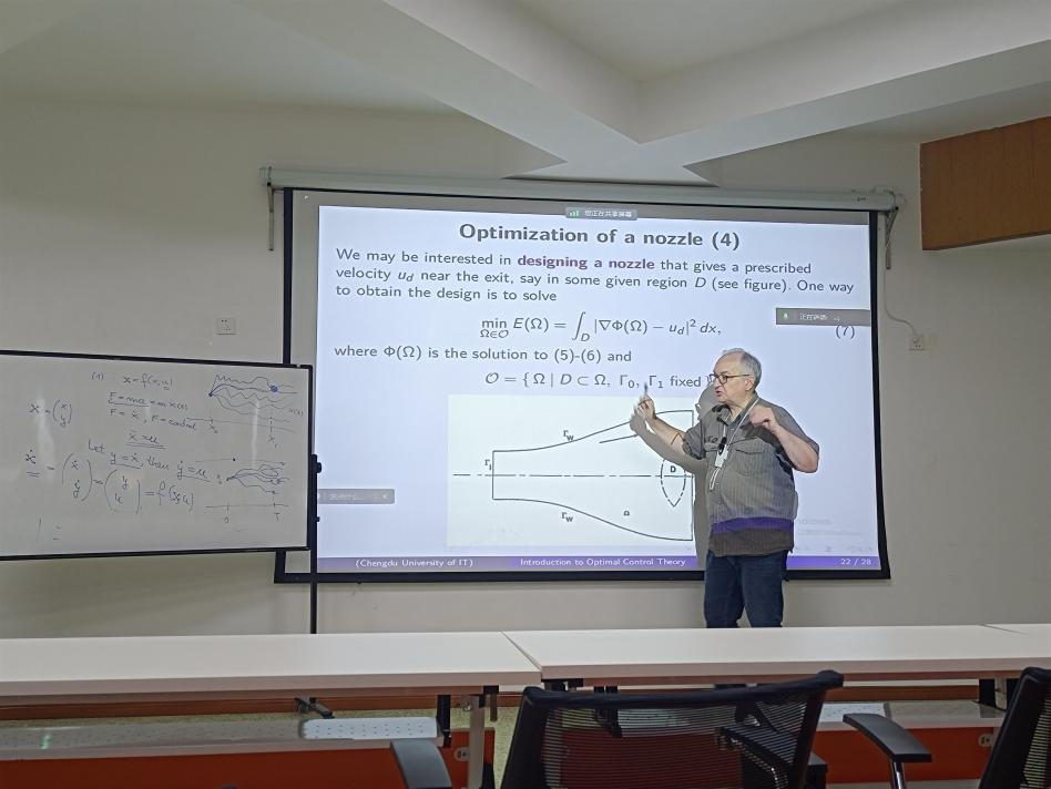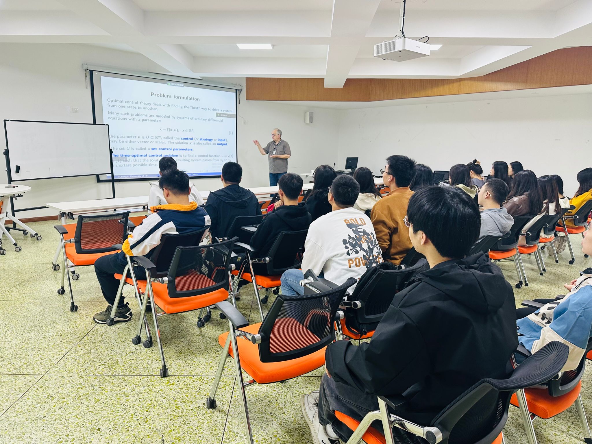 10月19日报告主题是《An Introduction to Mathematical Theory of Optimal Control》,线上线下同步开展,线下地点位于信息楼六楼大会议室,学院师生50余人同步聆听了本次报告。优化控制理论涉及到将系统从一种状态驱动到另一种状态的“最佳”方法,许多这样的问题都是由常微分系统来模拟的。在讲座上,Stanislaw Migorski教授阐述了最优控制的数学理论的基本概念,并通过序微分方程的最优控制、偏微分方程、最优设计等例子来说明,例以最低的燃料成本引导火箭进入规定的轨道、喷嘴的优化、声学中的形状优化等,最优控制理论可以应用于飞机设计、材料参数识别、工程和工业结构设计等。