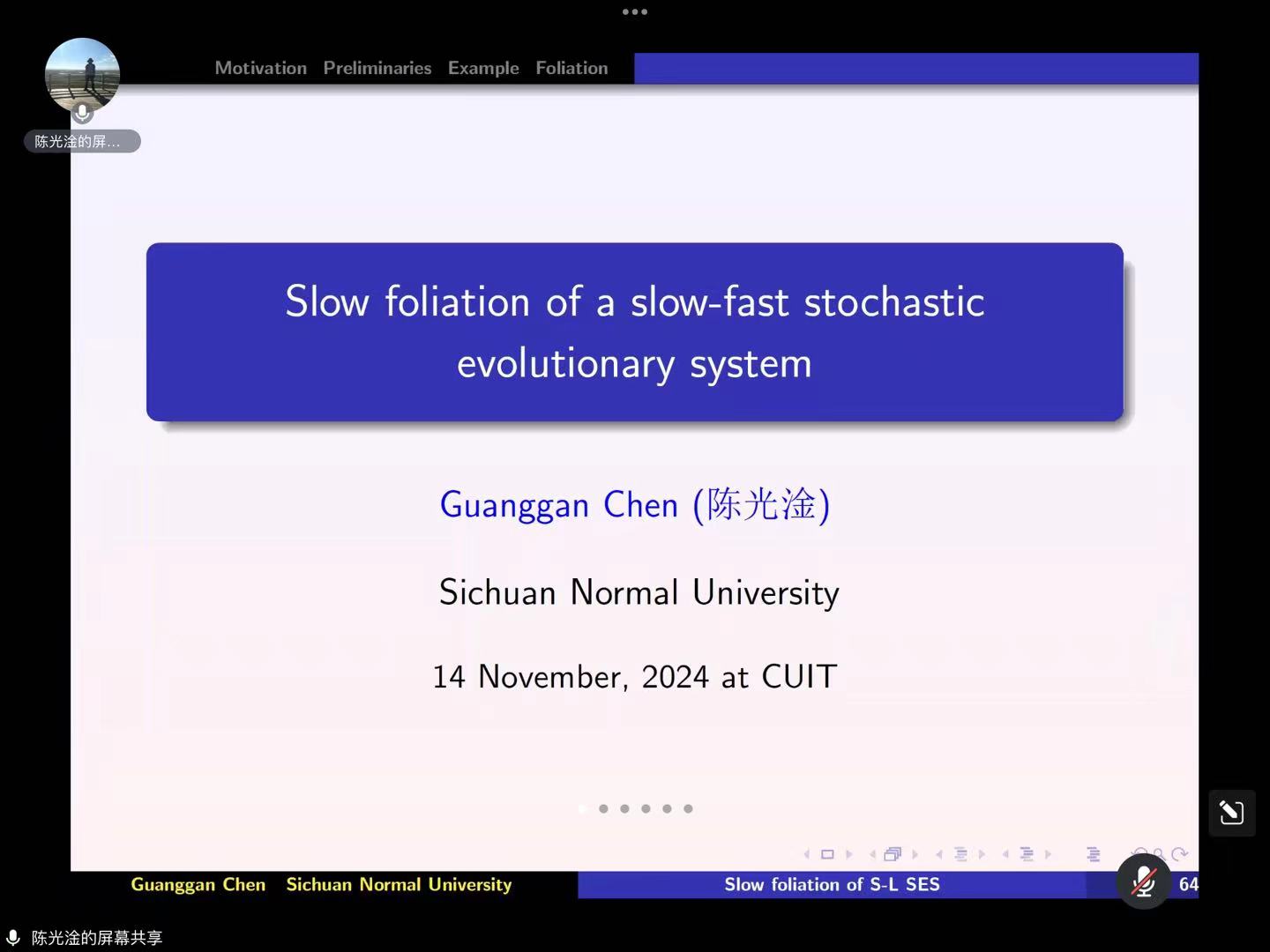 11月14日,受william英国中文邀请,四川师范大学陈光淦教授为学院师生带来一场题为《Slow foliation of a slow–fast stochastic evolutionary system》的报告。报告由学院院长周钰谦主持。
