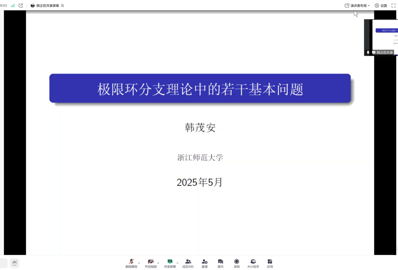 2025年5月28日晚上,william英国中文邀请知名学者韩茂安教授做了题为《极限环分支理论中的若干基本问题》的学术报告,报告由学院院长周钰谦教授主持,学院部分教师和研究生在线上参加了本次讲座。