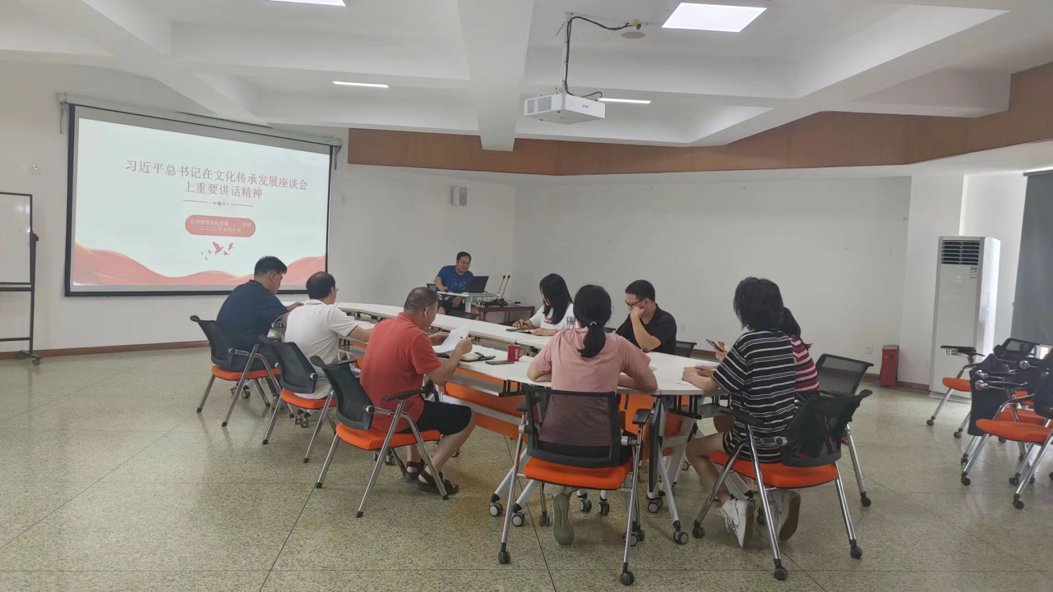 学院班子成员就本次学习谈了自己的心得体会。学院院长周钰谦发言谈到,习近平总书记的重要论述,清晰地阐明了传承弘扬优秀传统文化和马克思主义基本原理二者彼此契合,在“结合”中实现了相互成就,也将在“结合”中书写新篇。学院副院长吴泽忠谈到,传承文化发展,共同努力建设中华文明,我们必须要不断增强文化自信,提升文化自觉。学院副院长胡建成谈到,面向未来,我们要深入学习贯彻习近平总书记关于文化建设的一系列重要论述,担当使命、奋发有为,不断铸就中华文化新辉煌、谱写民族复兴新华章。