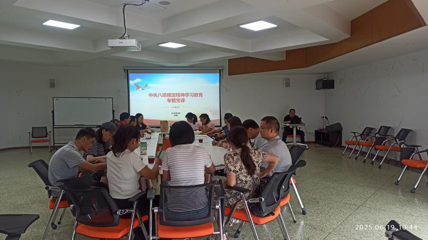 党政党支部于6月12日在信息楼6楼大会议室召开专题学习会,深入贯彻中央八项规定精神学习教育。本次学习采取理论研学和案例警示相结合的方式进行,支部书记冀少君带领全体党员学习了中央八项规定精神及实施细则的核心内容,重点解读了与高校工作密切相关的条款要求。随后,会上剖析典型案例,以案为鉴、以案明纪。6月19日学院党委书记李明讲党课,他深入解读中央八项规定的核心与实质,结合实际剖析深入本次学习教育的背景和意义,并强调要以专项学习教育为契机,推动师德师风建设再上新台阶。同日,支部组织召开专题学习会,学习习近平总书记在贵州、云南、河南等地调研考察时的重要讲话精神,学习违反中央八项规定精神典型案例。会议强调要深刻领会习近平总书记关于高质量发展、乡村振兴、生态保护等重要论述,结合学院实际,推动党建与业务工作深度融合。