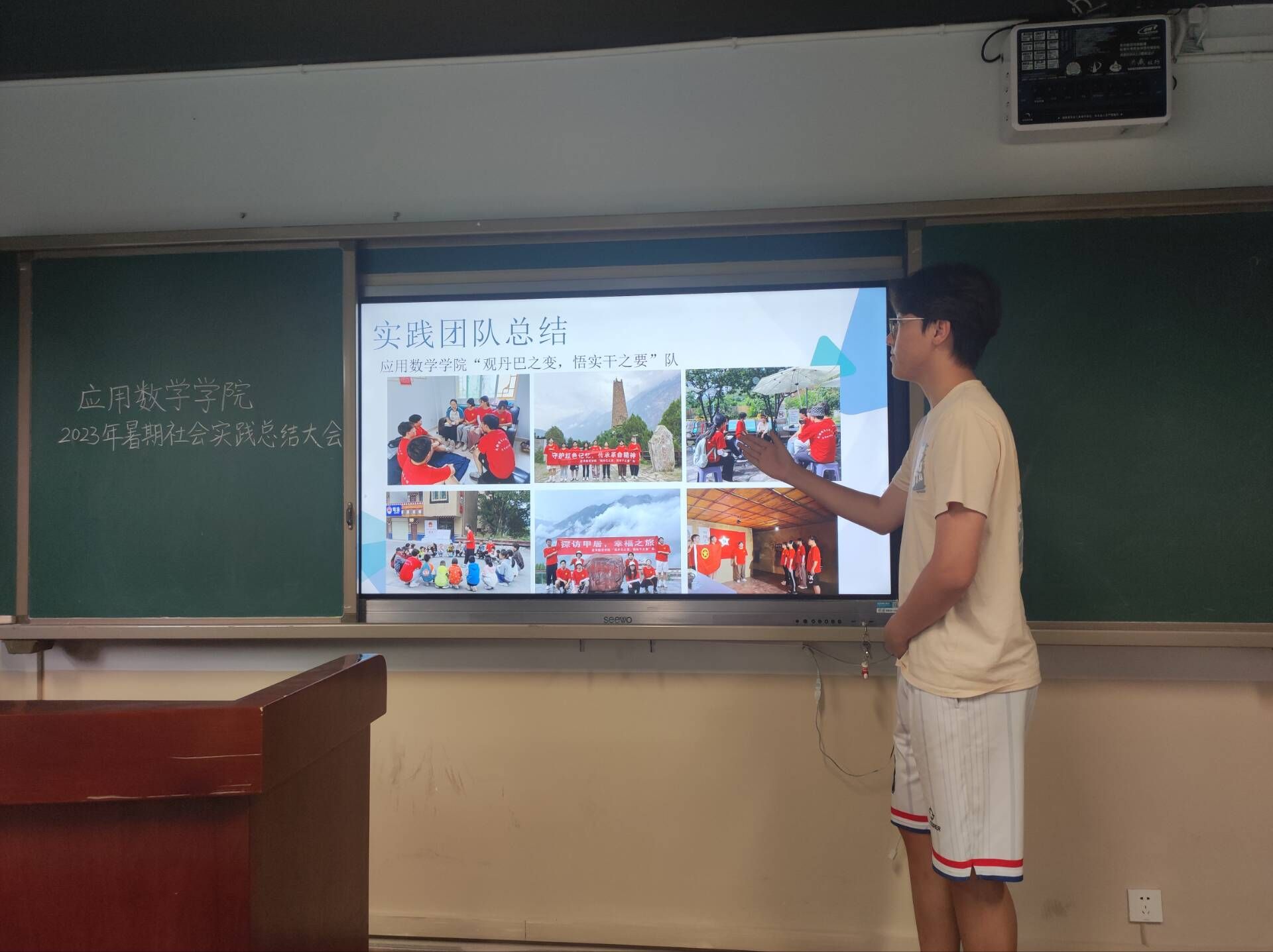 其次,各团队负责人分别就队伍暑期社会实践活动进行汇报总结。其中,“观丹巴之变,悟实干之要”队的副队长吴限乐跟大家分享了自己在甘孜藏族自治州丹巴县的7天经历,他们第一次走进少数民族地区,参观红色教育基地,利用自身专业特色开展趣味数学、数据统计分析等活动,充实的7天生活让大家深刻感受到社会实践的意义,也感受到了丹巴的发展和变化。