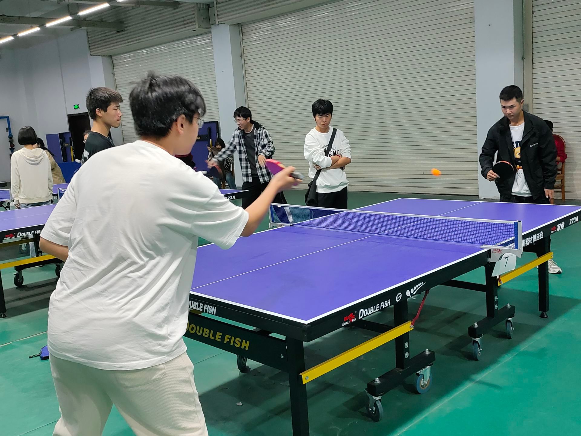 此次比赛形式为男单,女单;经前期广泛宣传动员,全院各年级共有40名同学报名参赛。此次比赛采用分组晋级模式,组内选手循环比赛,两两之间进行一局比赛,每局5球,先赢5球者记1分,三局两胜。积分相同净胜球多者排名靠前。每组取前两名进入决赛。参赛选手为了此次比赛,在赛前积极备战训练,大家在练习中是对手更是共同进步的队友。比赛过程中,选手们展现出卓越的球技和灵活的身手。他们的球拍舞动间,球飞速地在球桌上来回反弹,每一次击球都充满力量和技巧,现场气氛热烈而激动人心。