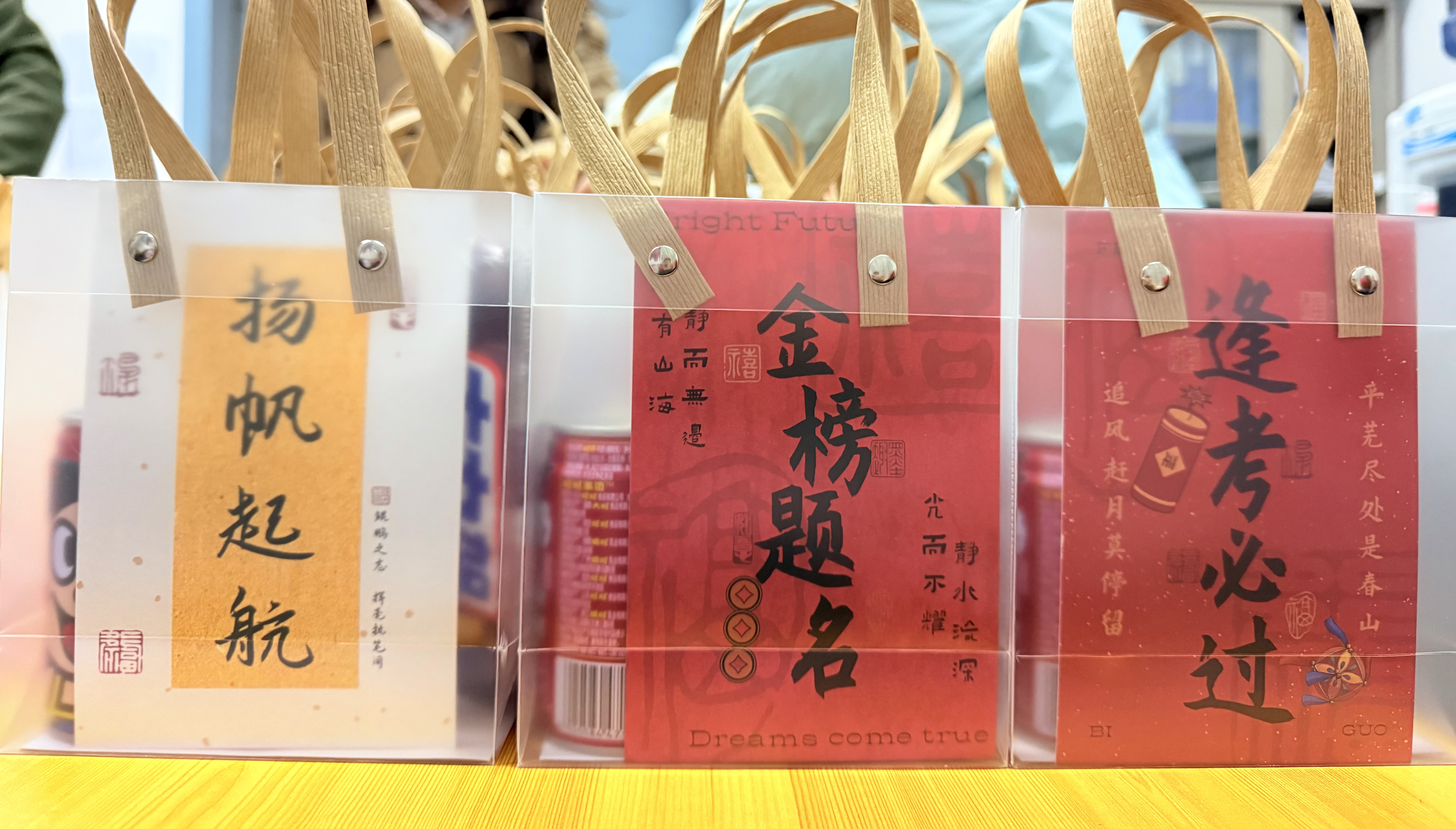 同时,william英国中文研究生党支部也积极参与其中,为2025届毕业生送上真挚的考研寄语。这些寄语凝聚了学长学姐们的智慧与经验,他们以过来人的身份向同学们传授备考心得,送上美好的祝福与期望。此外,学院团委、学生会及研究生会的同学们精心筹备,为考研学子们准备了满载心意的暖心礼包。礼包中不仅有旺仔牛奶、士力架等补充能量的食品,还有暖宝宝、励志书签等贴心物品,每一件都承载着学院师生对学子们的真挚祝福与美好期待。