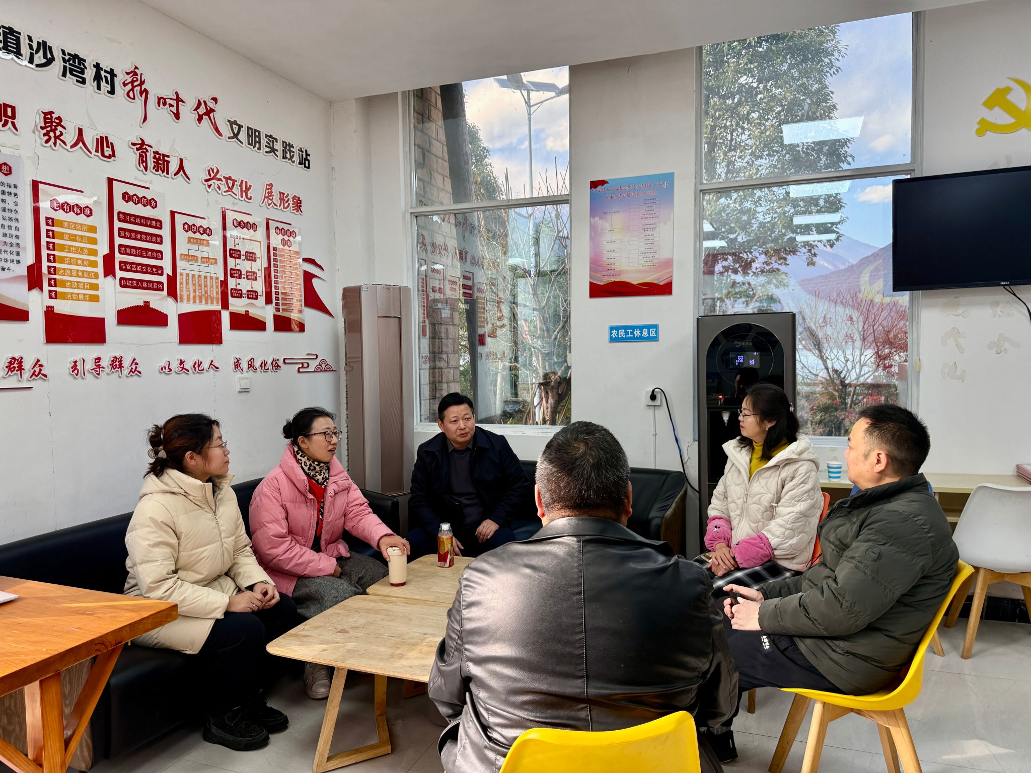学院一行来到泸定县烹坝镇沙湾村,在村党群服务中心,双方首先召开了党建工作交流座谈会。会上,村党支部书记夏年华、驻村第一书记—我院大学数学党支部党员李艳老师分别介绍了沙湾村在强化基层党组织建设、产业发展、人居环境等方面的情况,林细俤分享了学院在基层党建、专业人才培养和社会服务方面的特色优势,双方围绕乡村振兴、校地合作展开交流,并就未来合作方向达成了初步共识。