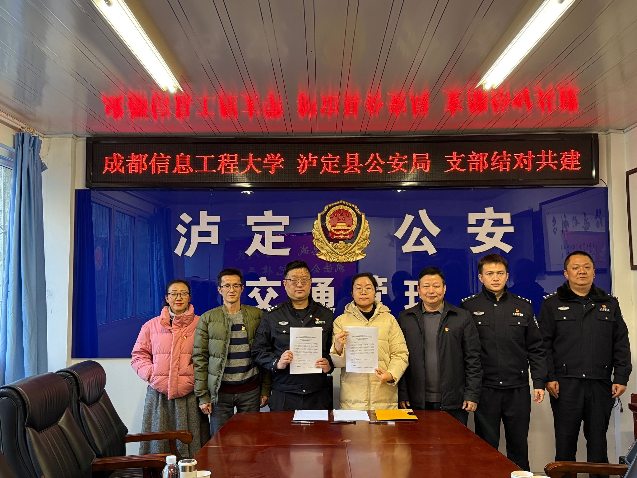 12月11日上午,学院教工行政党支部联合通信工程学院行政党支部赴泸定县公安局,与公安局第四党支部举行结对共建签约仪式。会上,三方分别介绍了各自党支部的建设情况、党建工作特色及经验做法,并围绕党建与业务融合、党员教育培训、志愿服务开展、科技赋能警务等议题进行交流研讨。三方一致同意,以此次共建为契机,建立常态化沟通协作机制,通过组织共建、法治协同、队伍共育、资源共享,着力构建“党建引领、校警联动、优势互补、共建共赢”的党建工作新格局。
